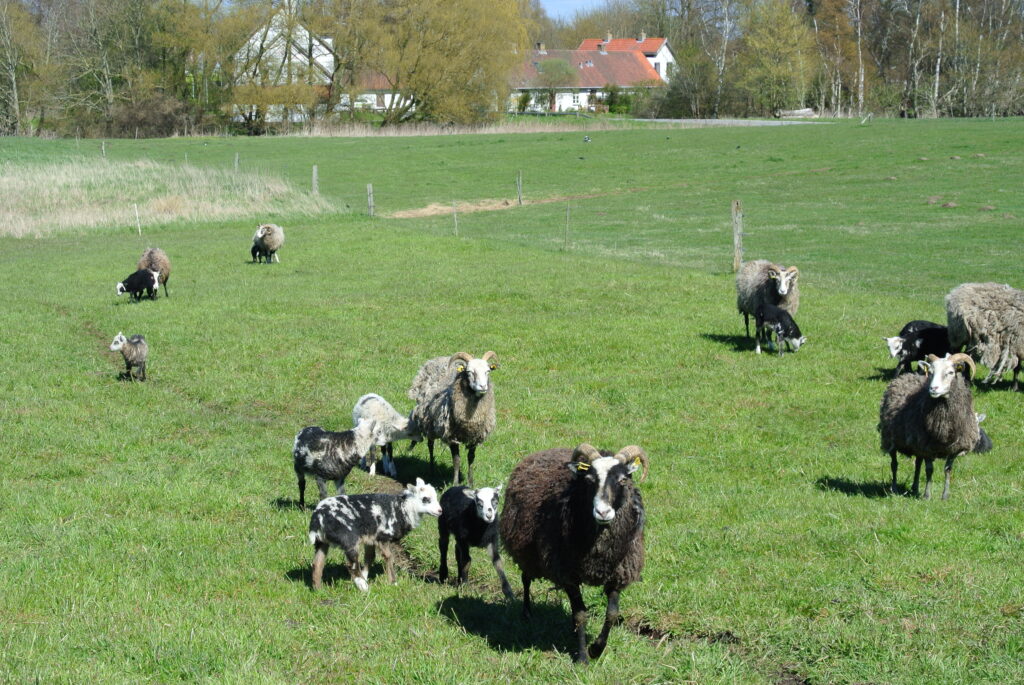 Fårene er af racen Gute, som er en gammel nordisk race. Pasningen varetages af en hyrdegruppe, som jeg er en del af. Særligt om foråret i forbindelse med læmningen er der et stort behov for tilsyn og hjælp i forhold selve læmningen, og til lam der skal have hjælp til at lære at die.